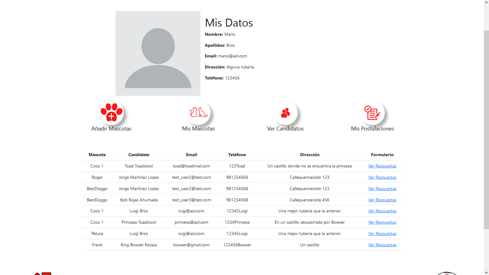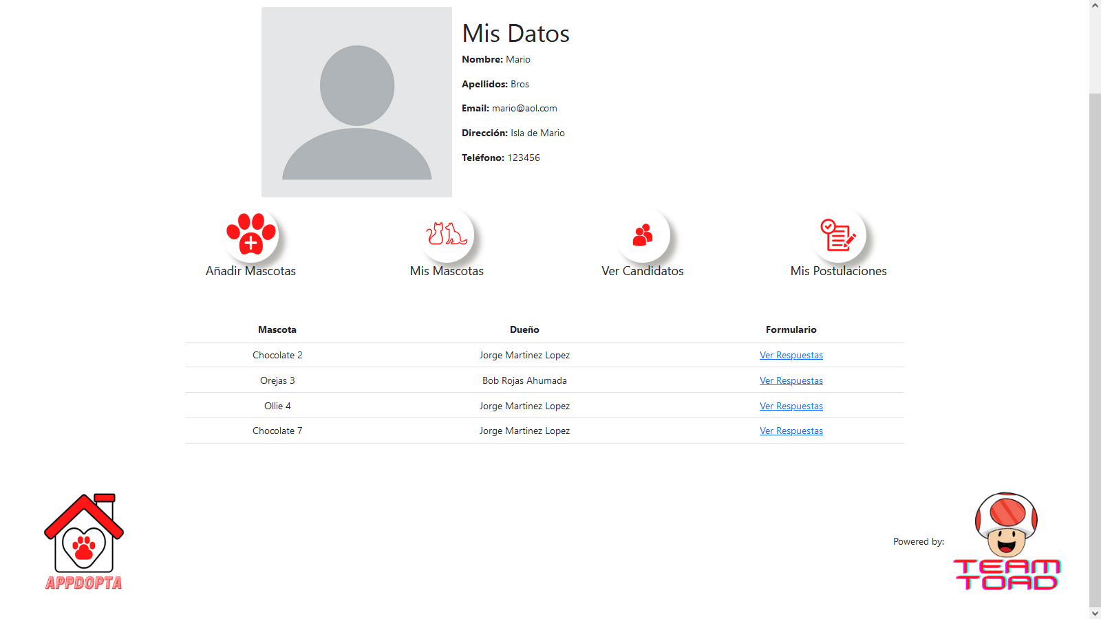 This was the final proyect at 4Geeks Academy. It's an app that allows users to put their pets for adoption, receiving applications from other users and choose based on their responses to an adoption form. It also allows to send adoption forms to be a candidate to adopt another user's pet.